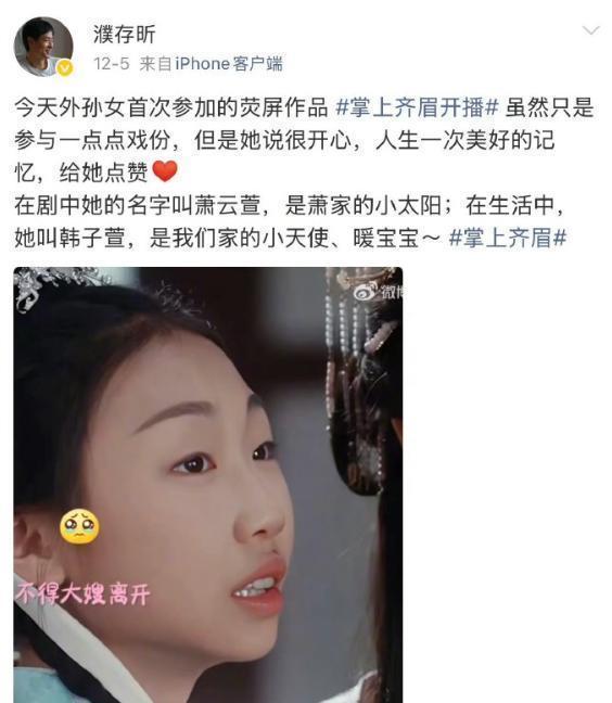 近日,72岁的濮存晰发文为自己的外孙女做宣传,可让网友们彻底炸了锅。起因是,他11岁的外孙女韩子萱因为出演了一部短剧,而让他引以为傲,于是发文祝贺。